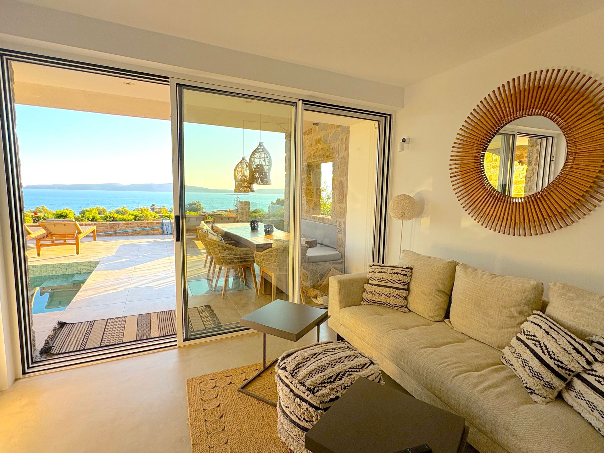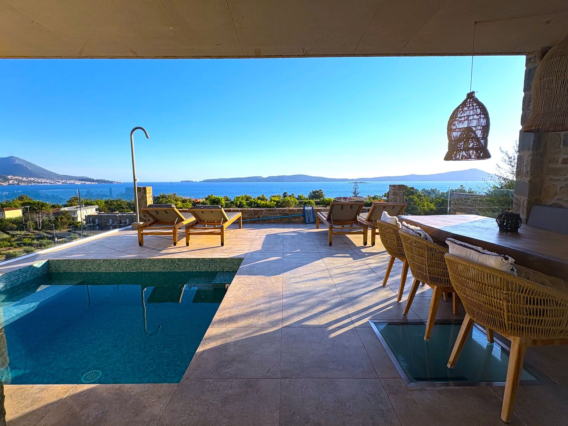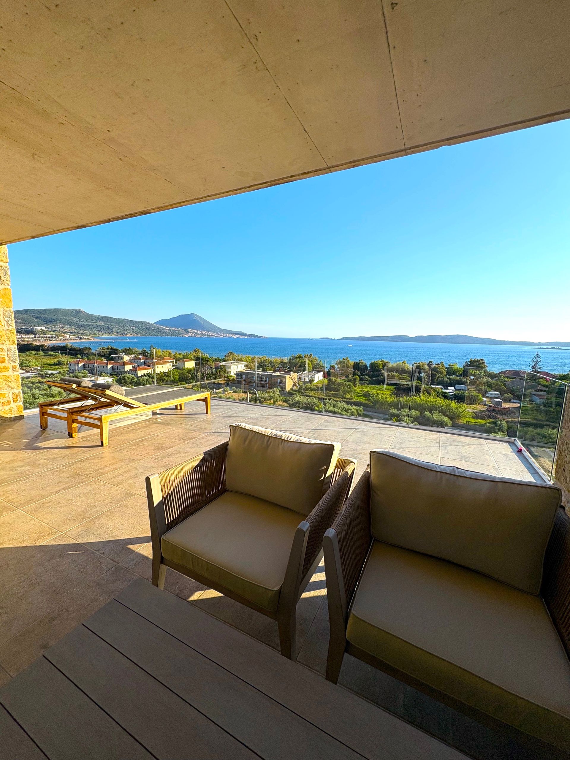 Privater Pool und atemberaubender Meerblick erwarten Sie in Gialova, Messinia, Griechenland. Unvergleichlicher Komfort auf 3 Etagen, Privatsphäre trotz Resort-Ambiente.
