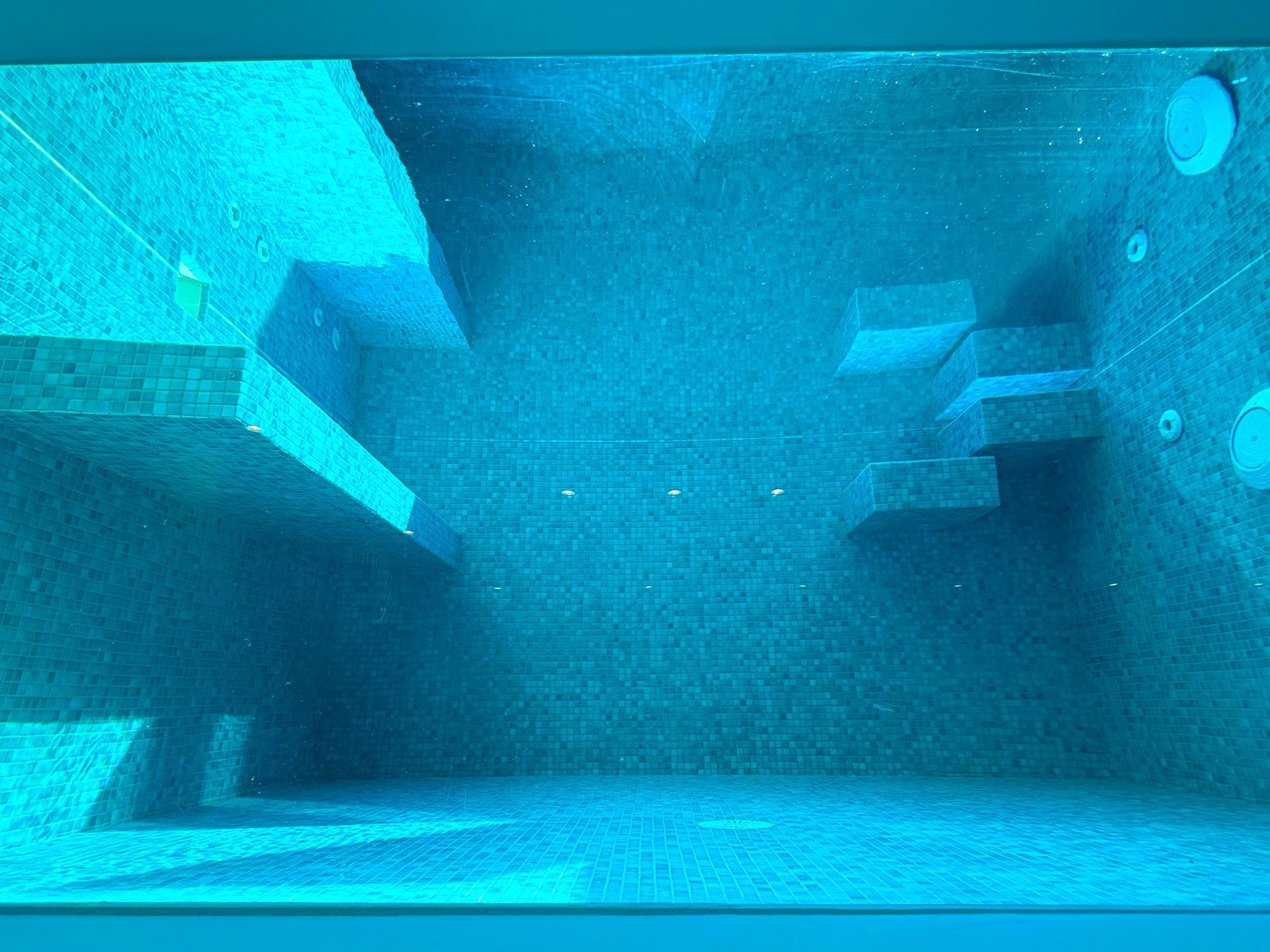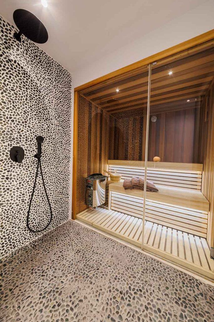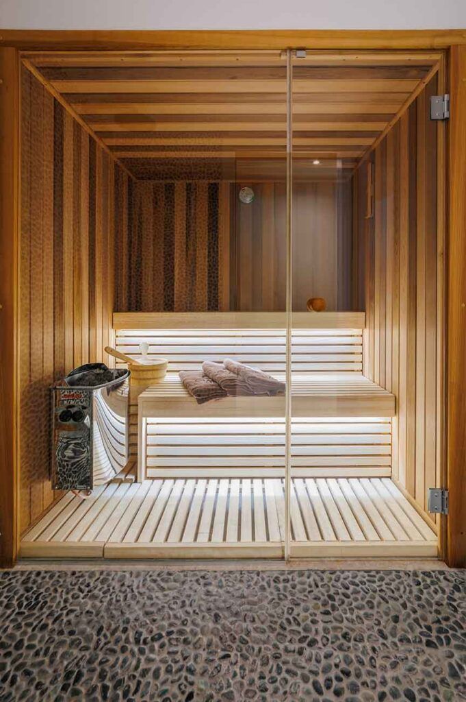 Das Untergeschoß überrascht mit der privaten Sauna und dem Unterwasser-Fenster.